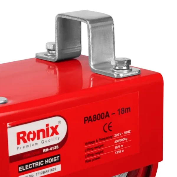 بالابر RH-4130 رونیکس از ظرفیت تحمل حداکثر 250 کیلوگرم بار در وضعیت دوبل و 125 کیلوگرم در وضعیت استاندارد برخوردار است. از دیگر ویژگیهای این محصول میتوان به سیم بکسل فولادی و 18 متری آن اشاره کرد که مقاومت بالایی در برابر پیچخوردگی دارد.